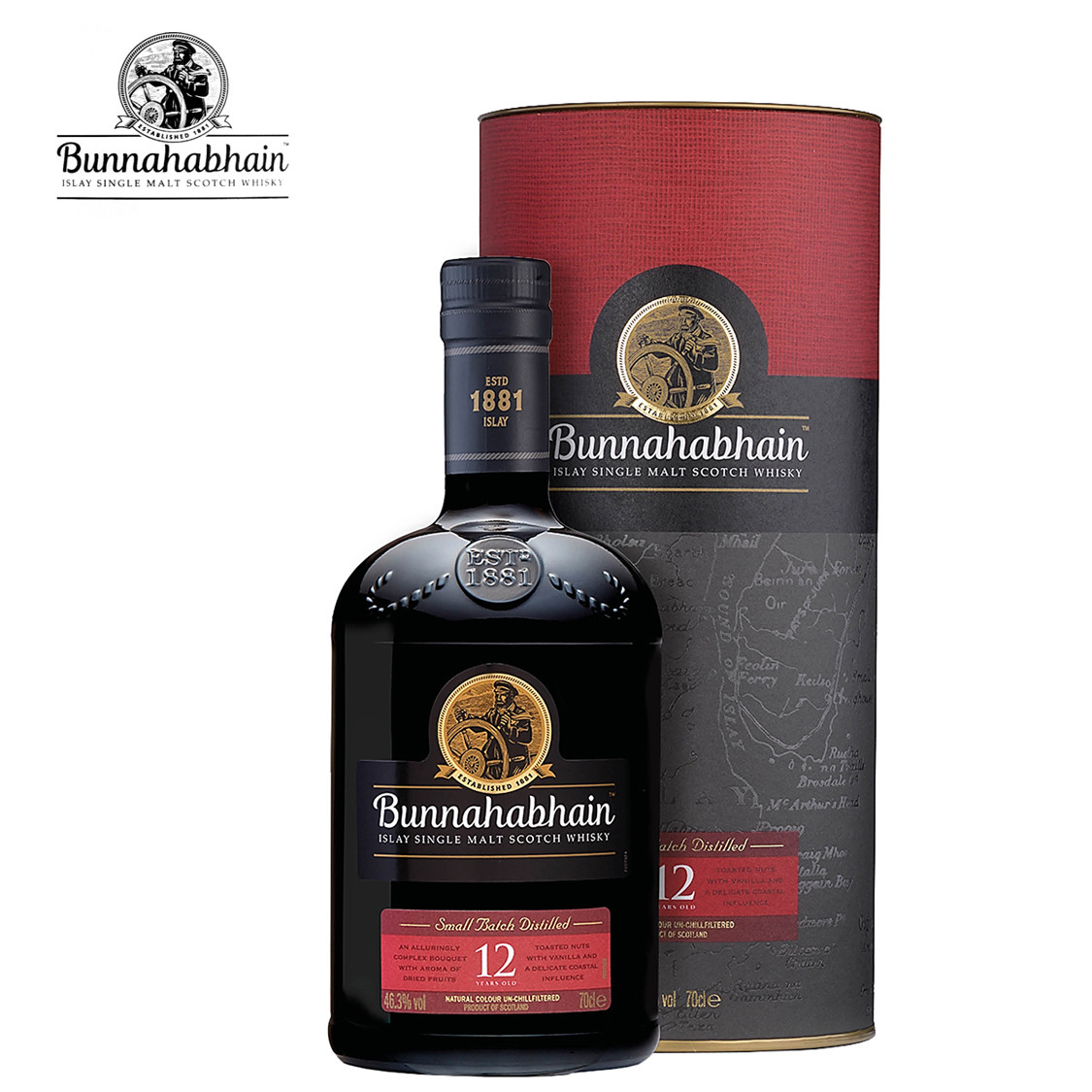 Prodotto per la prima volta nel 1979, questo Islay Single Malt Scotch Whisky 12 years old della distilleria Bunnahabhain è sul mercato da ben quarant’anni. È lasciato maturare parte in botti ex Bourbon e parte in botti ex Sherry, dimostrandosi ricco, pieno e complesso, perfettamente equilibrato in tutte le sue componenti e di estrema gradevolezza.
