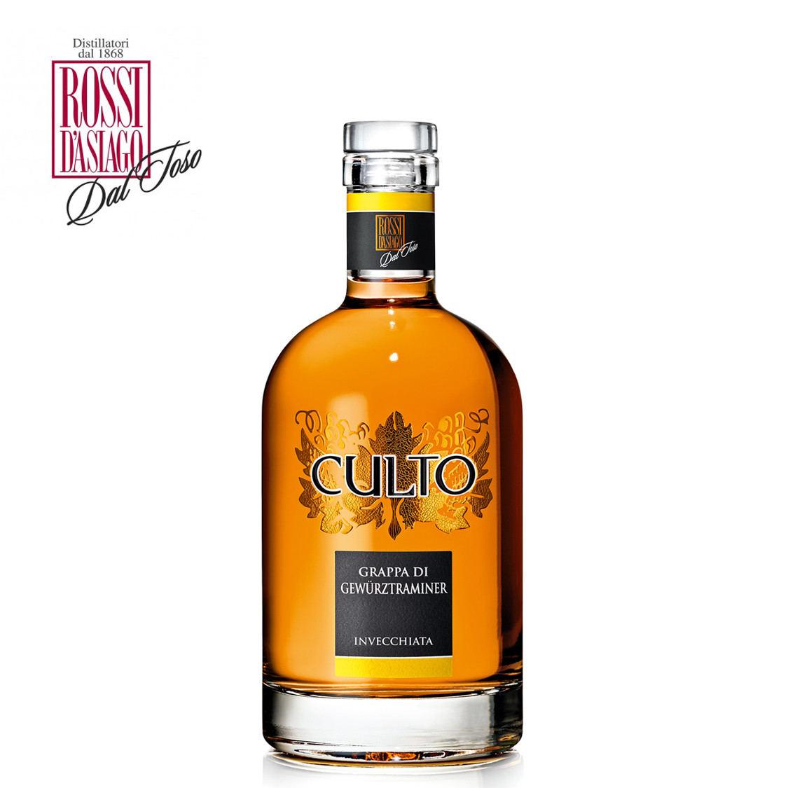 La grappa di Gewürztraminer Culto è una raffinata grappa aromatica, prodotta a partire da vinacce di uve trentine Traminer e invecchiata per 12 mesi in botti di legno pregiato. Alla vista si presenta limpida, con un colore giallo dorato. Il profumo coinvolgente rivela note vanigliate e legnose, mentre al palato risulta morbida, calda ed equilibrata e rilascia sul finale sensazioni raffinate di elegante equilibrio.