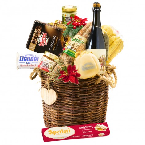 Confezionata con cura in un rustico cesto in vimini con maniglie in corda e inserita in una robusta scatola di cartone per la spedizione.