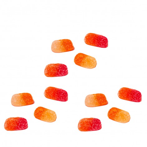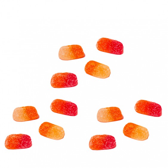 Ingredienti: zucchero, sciroppo di glucosio, acqua, nettare di arancia 2% (purea di arancia 1%, acqua, zucchero), nettare di lampone 2% (purea di lampone 0,9%, acqua, zucchero), nettare di pesca 2% (purea di pesca 1%, acqua, zucchero), acidificante (acido citrico), gelificante (pectina), aromi naturali, colorante (estratto di paprica), correttore di acidità (citrato di sodio), concentrato di sodio, succo concentrato di carota nera.