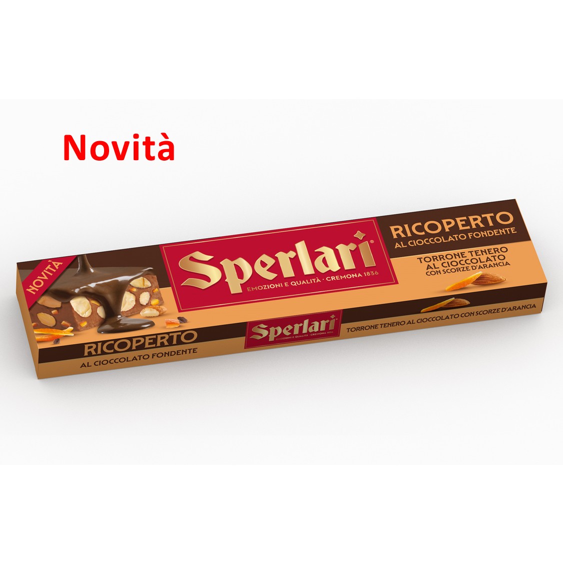 SPERLARI Torrone tenero al cioccolato con scorze d'arancia.