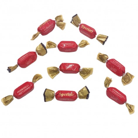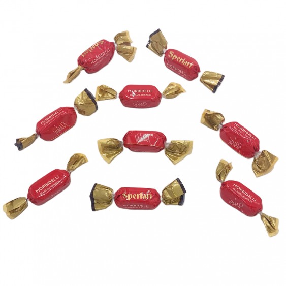Torroncini teneri con cioccolato fondente e scorze d'arancia candite, ricoperti di cioccolato fondente o bianco.